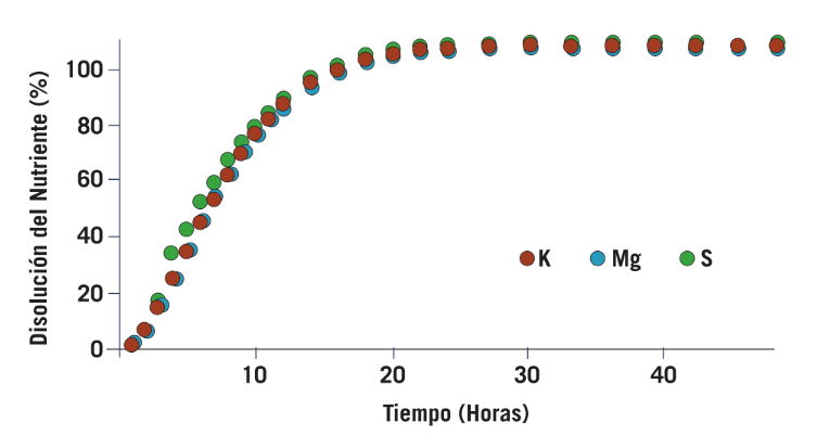 Figura 2. Solubilidad de K, Mg y S en K-Mag Granular [4].