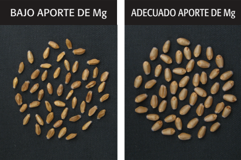Por ejemplo, una publicación reciente indicó una reducción en el peso de la semilla de trigo desde 41 a 24 mg/semilla en un ambiente de crecimiento bajo en magnesio (Fig. 2).